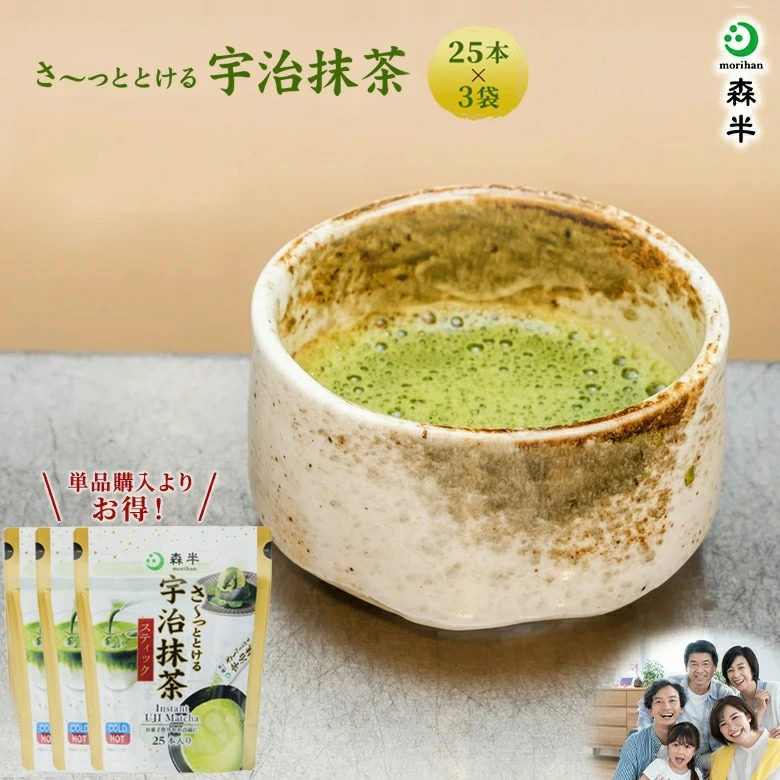 【森半】宇治抹茶棒 到哪都能喝的抹茶 25支裝 3包組 粉末綠茶 京都 宇治茶 日本茶 咖啡因 日本必買 | 日本樂天熱銷